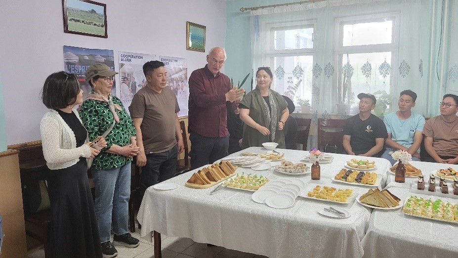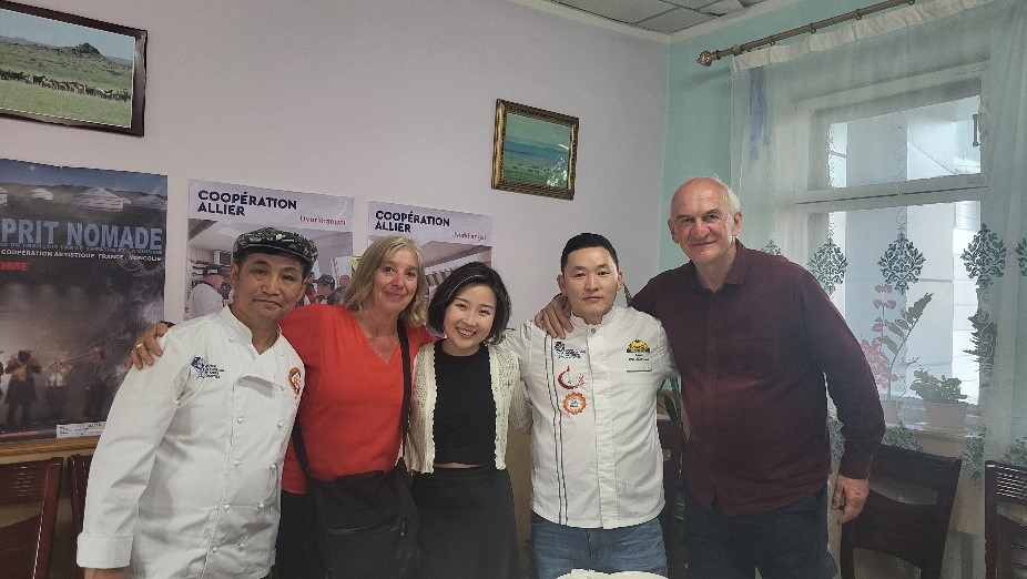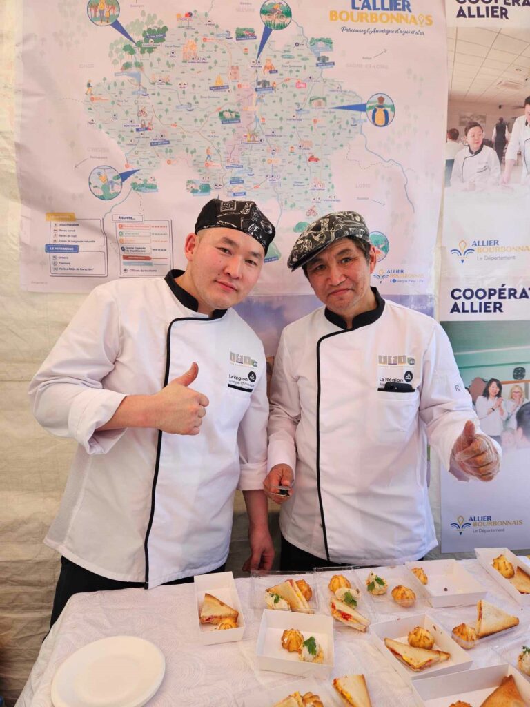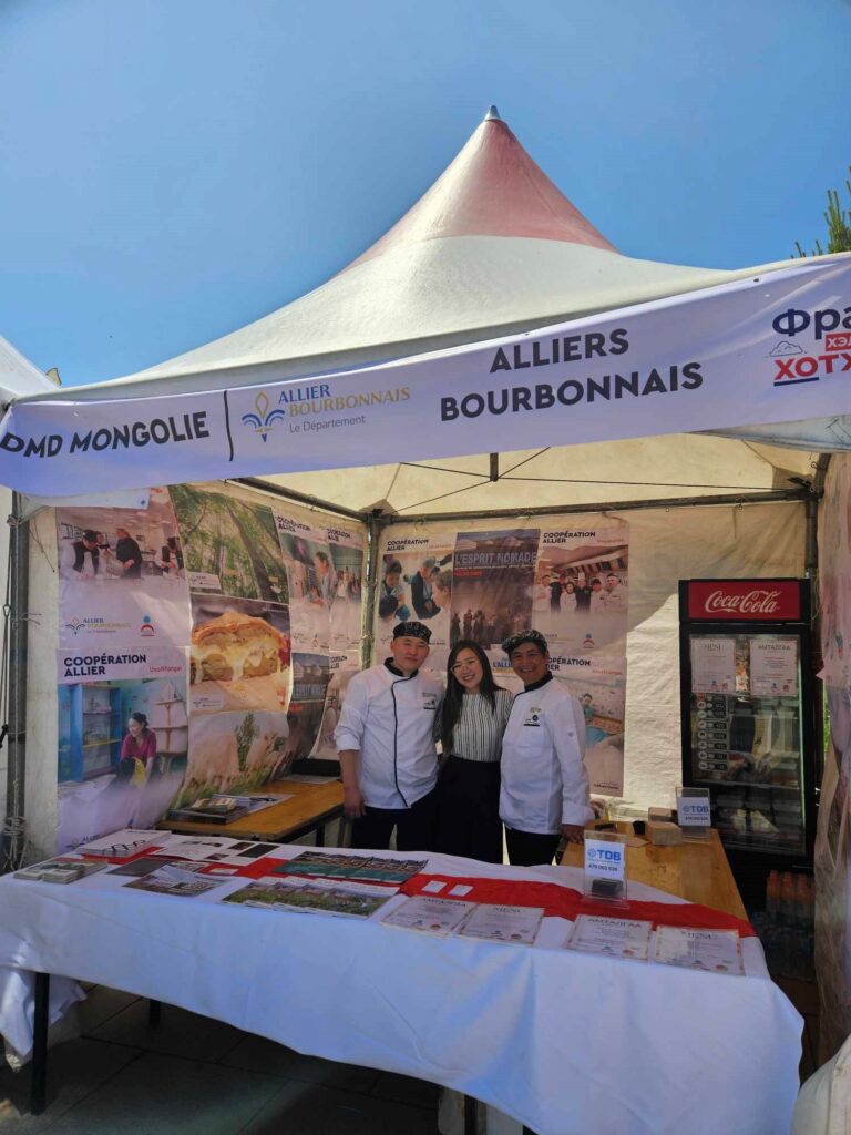 Un accueil chaleureux et francophone a été réservé aux visiteurs grâce aux deux « tops chefs » mongols qui ont suivi en mars dernier à IFI 03 une formation en « pâtisserie-traiteur ». Ils ont régalé le public mongol venu nombreux avec des recettes créées à Moulins.