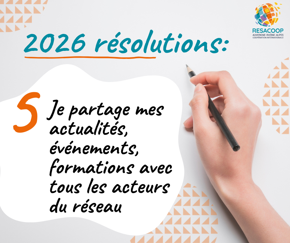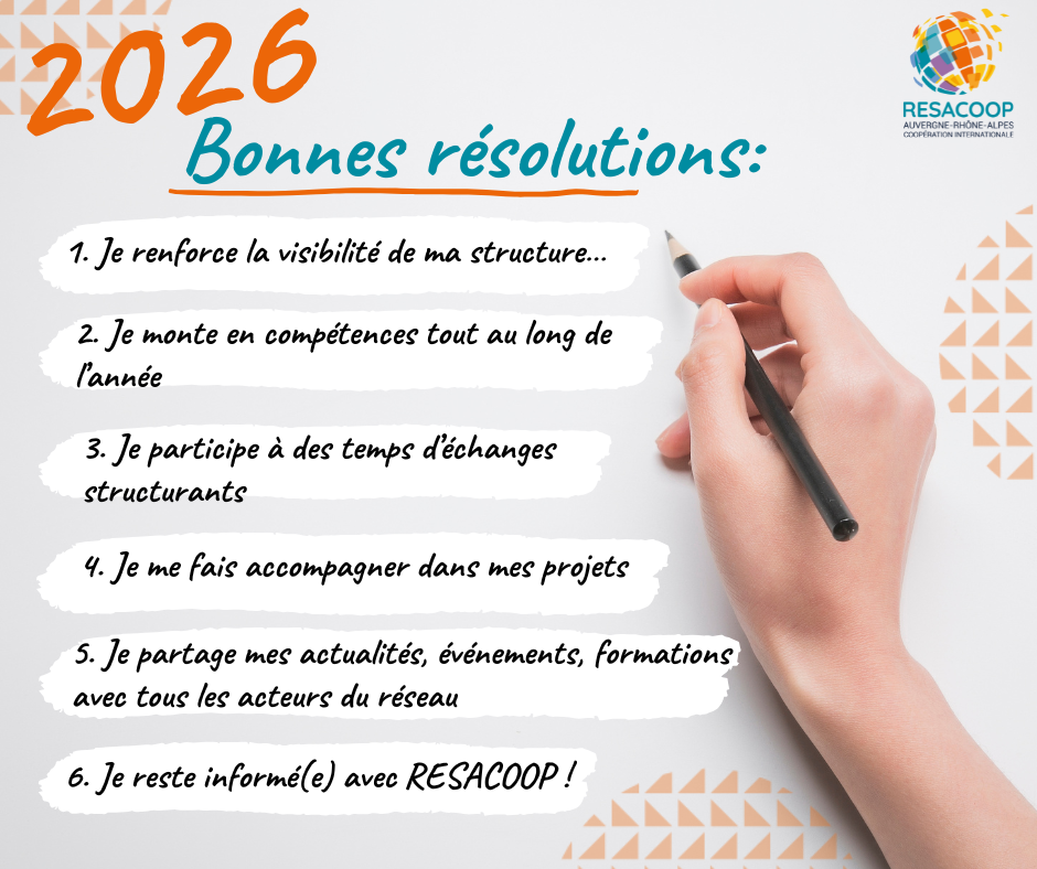 En cette nouvelle année 2026, nous vous proposons une nouvelle série de bonnes résolutions pour renforcer l'engagement, l'impact et la coopération entre les acteurs de la solidarité internationale en Auvergne-Rhône-Alpes. Parce qu'ensemble nous sommes plus forts, voici nos engagements pour une année riche en partage, apprentissage et transformation.