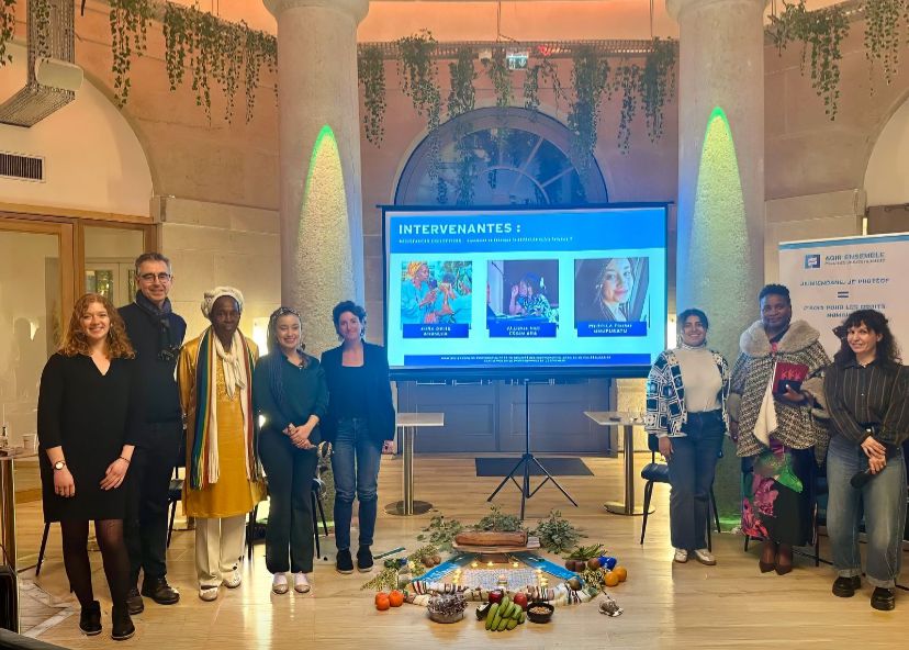 Cette rencontre, qui associait dialogue, rituels culturels et expression artistique, a permis de sensibiliser le public aux formes de résistance collective que les femmes mettent en place au sein de leurs communautés pour lutter en faveur de la défense de leurs droits et de leur territoire, et contre toutes les formes de violence, en tissant avant tout des liens communautaires et des réseaux de sororité à travers des témoignages des défenseuses des droits des femmes comme ceux d’Aura Dalia Caicedo (colombienne), de Priscila Fischer (brésilienne) et d’Alliance Henri (congolaise).