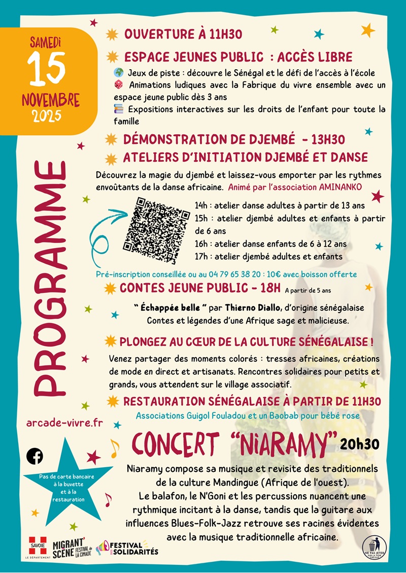 ✨ Petits et grands sont invités à plonger dans les richesses culturelles du Sénégal et d’Afrique de l’ouest à travers des animations variées, des contes, des ateliers de découvertes de danses et de djembés et un concert final qui promet de faire vibrer le public.